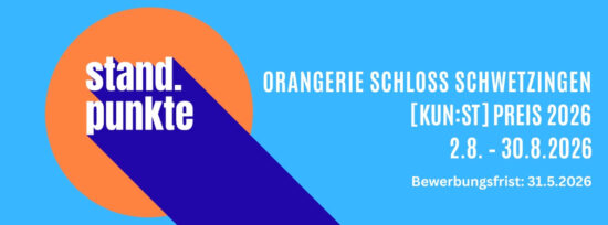 Achtung: Für die ermittelte Teilnahme am [KUN:ST] Preis 2026 und an der Kunstpreisausstellung in der Orangerie des Schlosses Schwetzingen, ist pro zugelassenes Kunstwerk für Mitglieder eine Gebühr von 95 Euro zu entrichten und für Nichtmitglieder eine Gebühr von 125 Euro Der Kunstverein [KUN:ST] INTERNATIONAL e.V. veranstaltet in diesem Jahr einen Wettbewerb in der Orangerie des […]