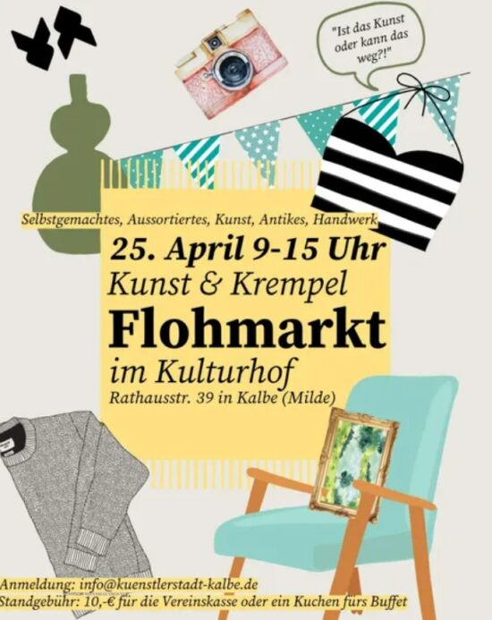 The artists’ town of Kalbe is organizing its first flea market in the Kulturhof on 25 April! Location: Kulturhof, Rathausstr. 39, KalbeDate: April 25, 2026, 9 a.m. – 3 p.m. Look forward to a colorful market full of art & junk, lovingly homemade, handicrafts & antiques There’s also a sumptuous cake buffet You want to […]