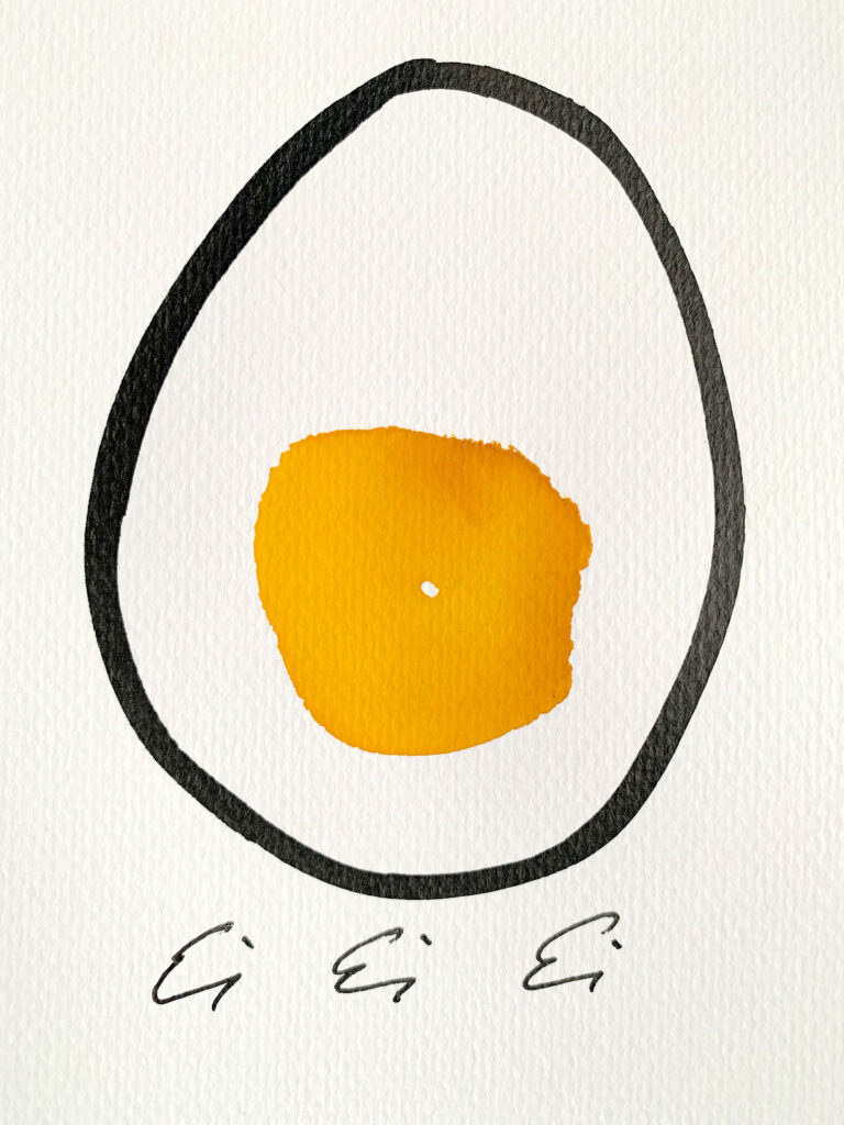 Wir widmen uns dem Kunst-Ei und denken an fein gezeichnete grafische Portraits auf Eiern, sogenannte Eierköpfe, präsentiert in kleinen Leuchtkästen oder auf Sockeln. Wir haben die Idee einer Flugei-Installation im Raum und denken an Grafiken im Ei-Format zum Thema Eisprung/Ursprung.